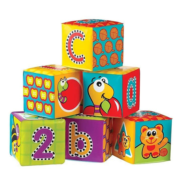 שש קוביות משחק רכות שמתאימות גם למשחק באמבטיה.