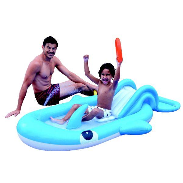 Jilong - בריכת פעילות מגלשה לויתן כולל מזרקהאורן 210 ס"מ רוחב 130 ס"מ מיועד לשימוש כמשחק בריכה . ניתן לחבר צינור גינה על מנת להשפריץ מים לרענון!מתאים לשימוש לילדים בגיל 2 ומעלה.