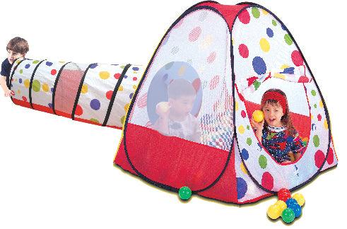 אוהל משחק עם מנהרה ו-100 כדורי משחק צבעוניים לשימוש בבית ומחוצה לו.