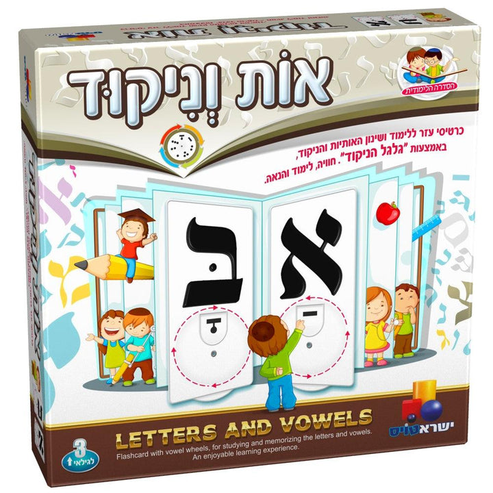 משחק המכיל כרטיסי עזר ללימוד ושינון האותיות והניקוד באמצעות "גלגל הניקוד"