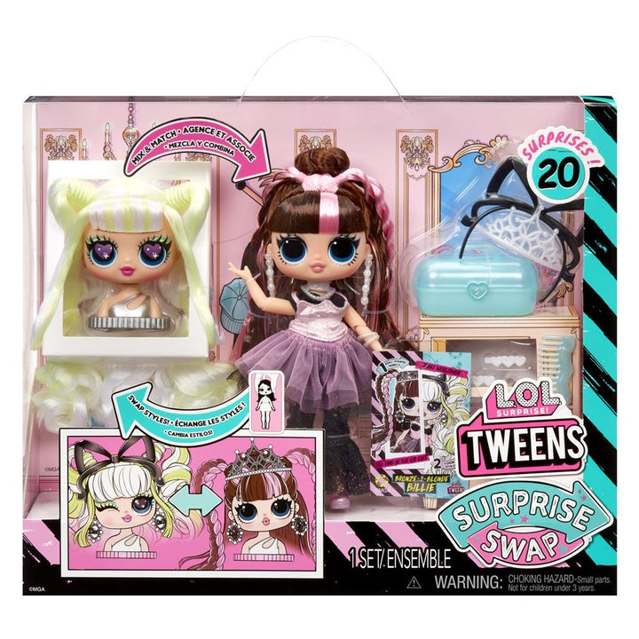בובות טווינס עם ראש מתחלף - LOL TWEENS בובת אופנה TWEENS הפתעת ראש מתחלף כולל 20 הפתעות לגילאי 4 ומעלה.