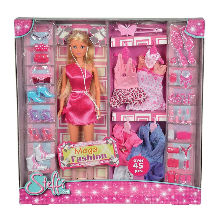 בובת סטפי סט תלבושות - Steffi Mega Fashion גובה כ-29 ס"מ. כוללת מעל 45 פריטי לבוש ואקססוריז! לגילאי 3 ומעלה.