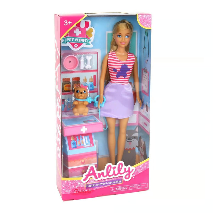 בובת Anlily בובת אנלילי מרפאת חיות מחמד כולל כלכל ואביזירים גובה כ-29 ס"מ. לגילאי 3 ומעלה.