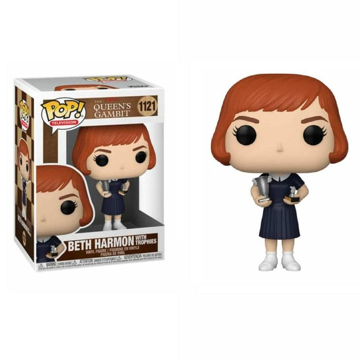 Funko Pop 1121 Beth Harmond With Trophies The Queen's Gambit Netflix בובת פופ מספר 1121 בת' הארמון מסדרת הנטפליקס גמביט המלכה לגילאי 3 ומעלה.