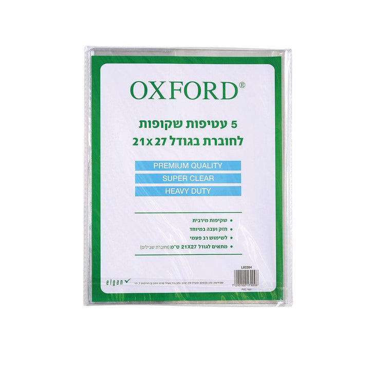 חבילת 5 עטיפות שקופות לחוברת בגודל 21 על 27 אוקספורד - Oxford