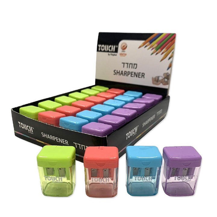 טאץ מחדד שני חורים ומיכל שקוף מלבני צבע המוצר תלוי בזמינות המלאי