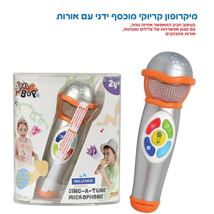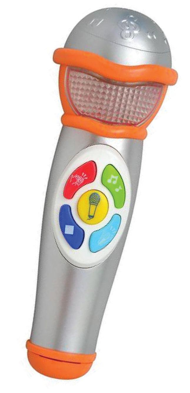 מיקרופון שרים ביחד הוא מיקרופון קולי עם אורות צבעוניים מהבהבים וקולות משעשעים. כולל כפתור המשמיע קולות של קהל מריע, קהל מוחא כפיים. נערו את המיקרופון להשמעת צילילים מיוחדים. כולל מנגינות רקע . מפתח שמיעה מוזיקלית מפתח את חושי הילד לימוד נגינת תווי נגינה מתאים מגיל 2 שנים+