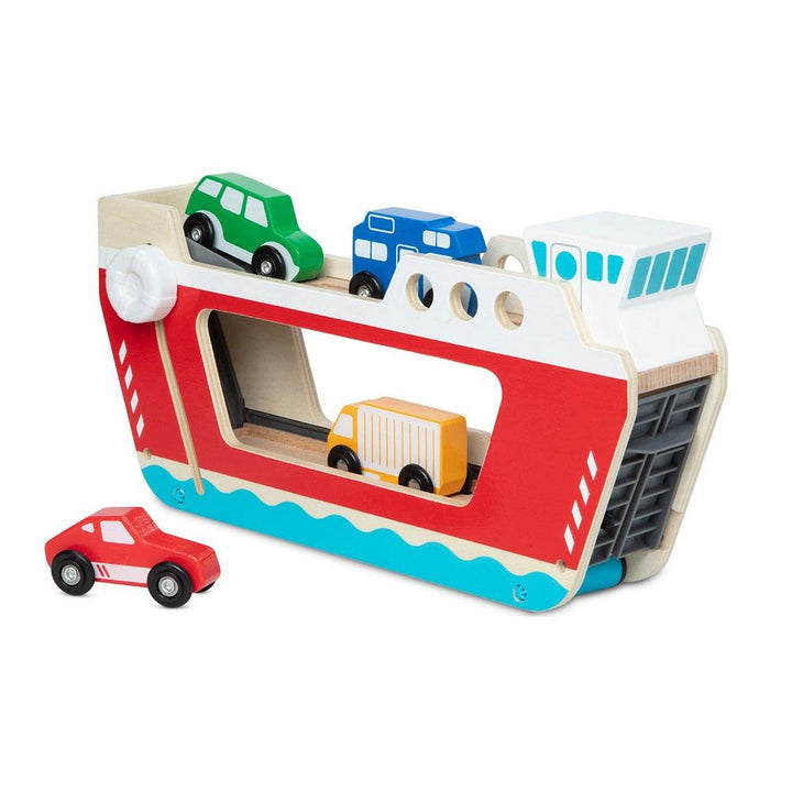 מעבורת מעץ מבית מליסה ודאג.מכירים את צעצועי העץ שאתם לא יכולים להניח בצד אפילו לרגע? המעבור הנפלאה הזו תשיט את הילדים שלכם ברחבי הדמיון! כולל מכונית, קופסאת משאית, רכב שטח וחניון שעומס על סירת המעבורת. תנו לדמיון להפליג עם מעבורת העץ הזו וארבע רכבי העץ. מעודד מיומנויות מוטוריות עדינות, זיהוי...