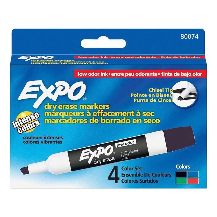 טושים מחיקים איכותיים מבית אקספו. סט 4 טושים צבעוניים מחיקים לכתיבה על לוחות מחיקים ומשטחים מותאמים. המארז מכיל ארבעה טושים בצבעים אדום, כחול, ירוק ושחור בעלי ראש שטוח.