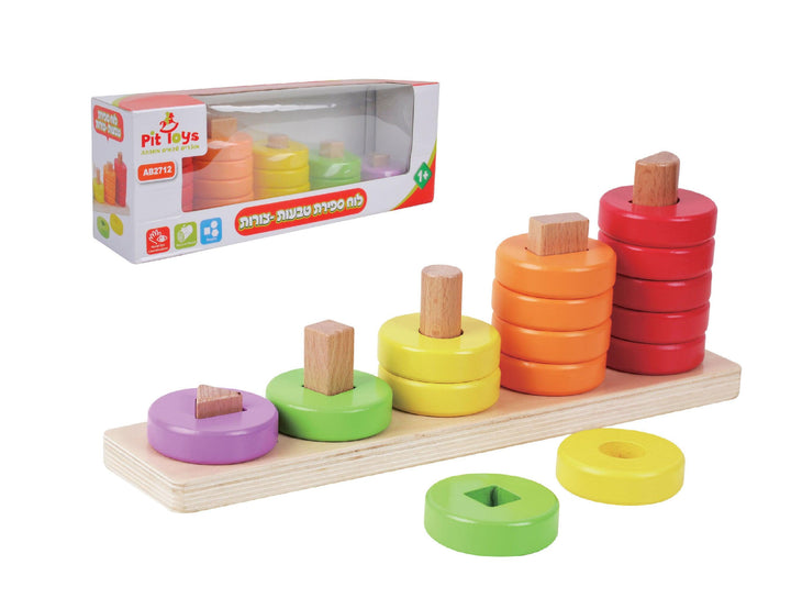 ספירת טבעות, התאמת צבעים וצורות מעץ 16 חלקים - פיט טויס