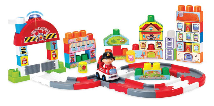 ערכת הרכבה תחנת כיבוי אש מכילה 60 יח’ של אבני בניה בצבעים שונים ובצורות שונות המרכיבות תחנת כיבוי אש , מכיל תחנת כיבוי אש , בובת לוחם אש, מכונית לכיבוי אש , מסלול צבעוני להרכבה, שער כניסה ומגדל . משמיע צלילים ומנגינות משעשעות שיעשירו את המשחק עבור ילדיכם. מגיע עם...