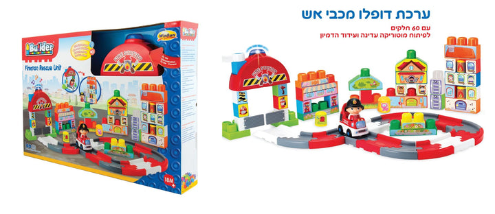 מכיל תחנת כיבוי אש , בובת לוחם אש, מכונית לכיבוי אש ,