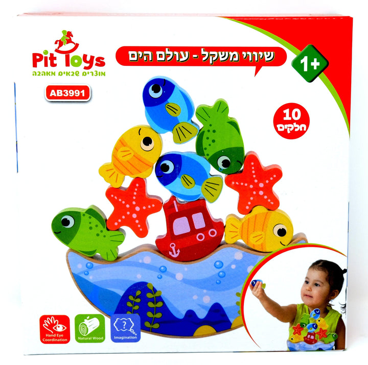 פאזל שיווי משקל מעץ עולם הים - Pit Toys