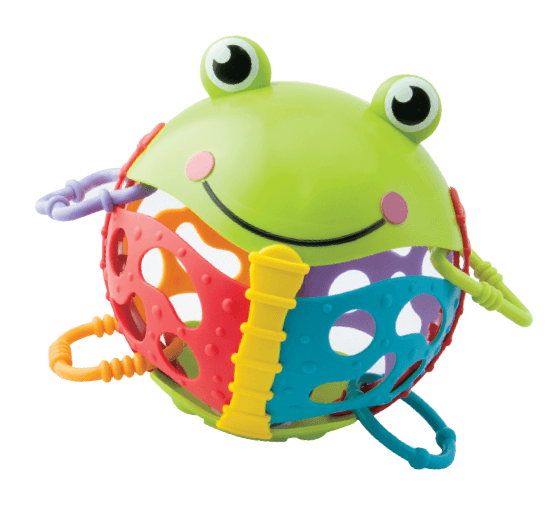 צפרדע הפעילות שלי עם 4 טבעות צבעוניות במרקמים שוניםכדור פנימי מרעיש וגוף רך המותאם לאחיזת ידי הפעוטות לגילאי 6 חודשים ומעלה.