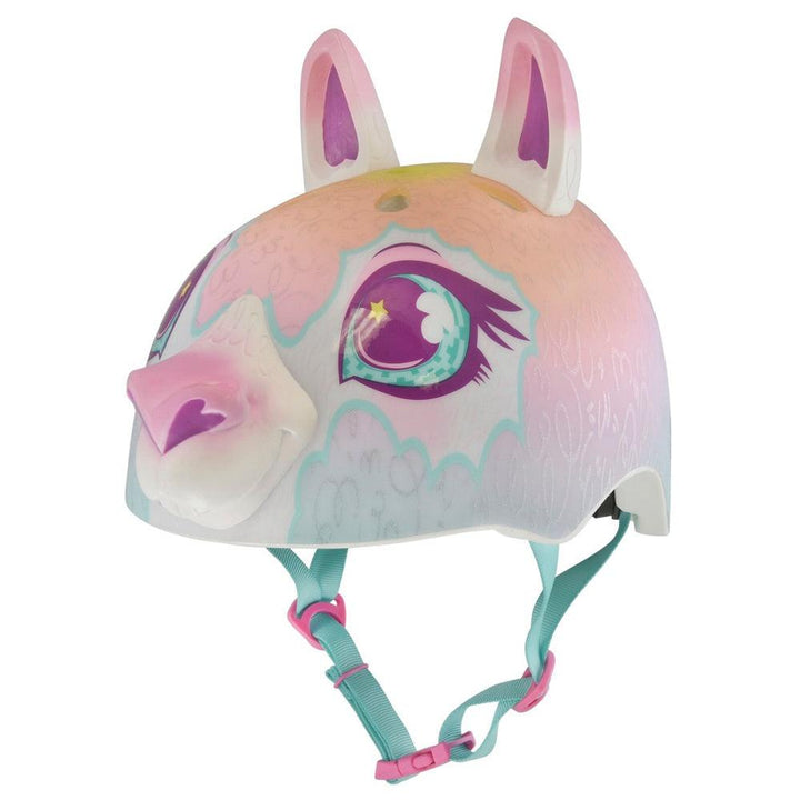 קסדה לראש דולי הלמה מבית Raskullz. רצועות מתכווננות ציפוי EXOTUFF בעיצוב תלת מימדפתחי קירור אווירודינאמיםקליפת EPS פנימית לבלימת זעזועיםעומדת בתקן בטיחות אמריקאי CPS. מתאים להיקף ראש: 50-54 ס"מ לגילאי 5 ומעלה.