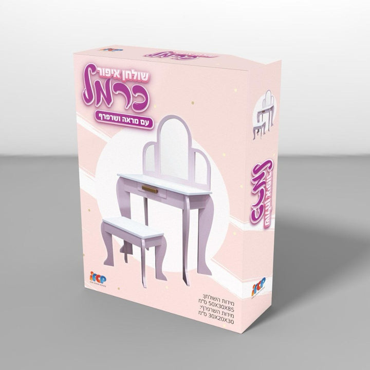 זהו משחק הבנות המושלם! הילדה אוהבת לקחת לפעמים את הנעליים והשמלות של אמא ואפילו להתאפר? שולחן האיפור מעץ יגרום לה להרגיש גדולה באמת עם שולחן שלם לגמרי משלה!