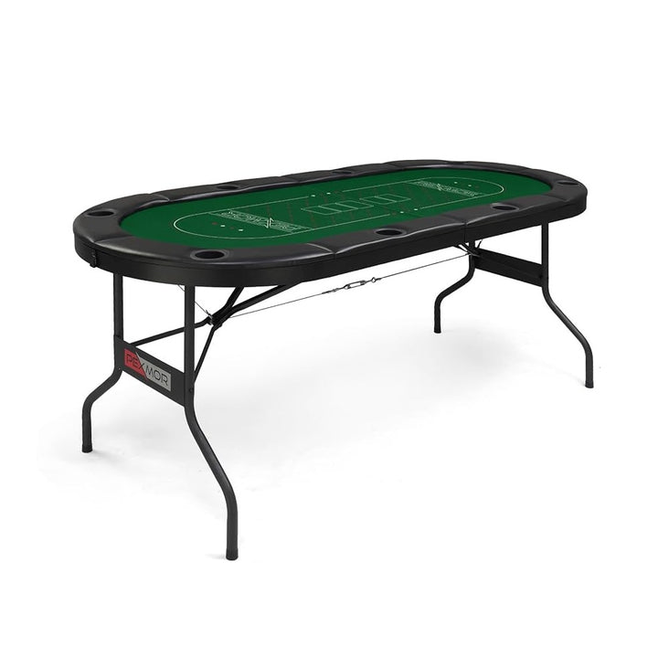שולחן פוקר ענק, איכותי, מקצועי ויציבמתאים ל- 8 שחקנים.המוצר בדיוק כפי שמתואר בתמונה,לשולחן פוקר מתקפל זה רגלי מתכת 25 מ"מ עמידות וחזקות.השולחן מתקפל בקלות, קלומתאים לאחסון ושינוע ממקום למקום.המשטח של שולחן פוקר עשוי MDF בעובי 12 מ"מעשוי לבד קזינו איכותי ונוח לניקויעם סימוני תיחום ברורים.מסגרת השולחן עשויה כרית נוחה למשענת...