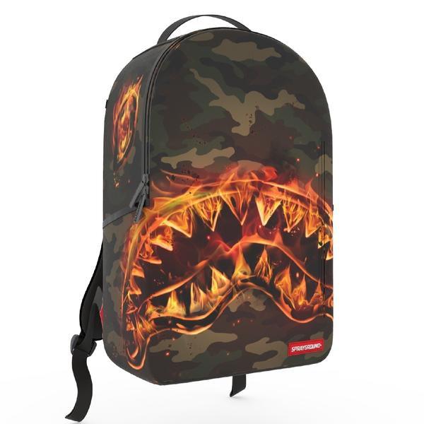 Sprayground Fire Shark תיק ספרייגראונד במהדורה מיוחדת קולקציית 2020. התיק בעל תג אותנטיות של ספרייגראונד.