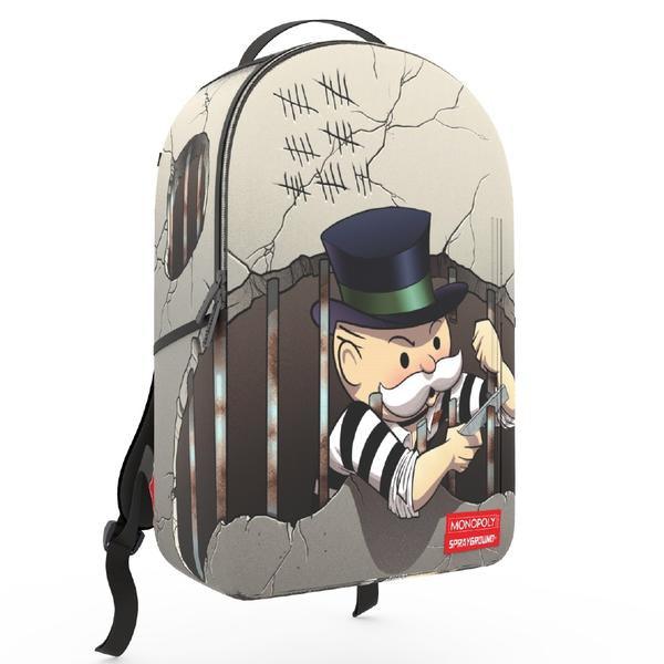 Sprayground Monopoly: Prison Break תיק ספרייגראונד במהדורה מיוחדת קולקציית 2020. התיק בעל תג אותנטיות של ספרייגראונד.