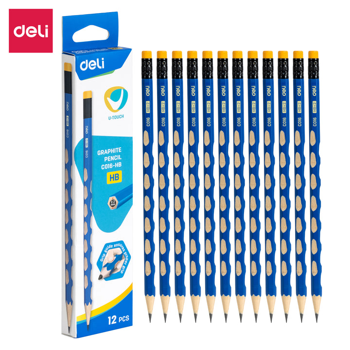 12 עפרונות בעל קצה משולש ומחודד HB כולל מחק מבית דיילי מעוצבים בסגנון גריפ המאפשר אחיזה נוחה