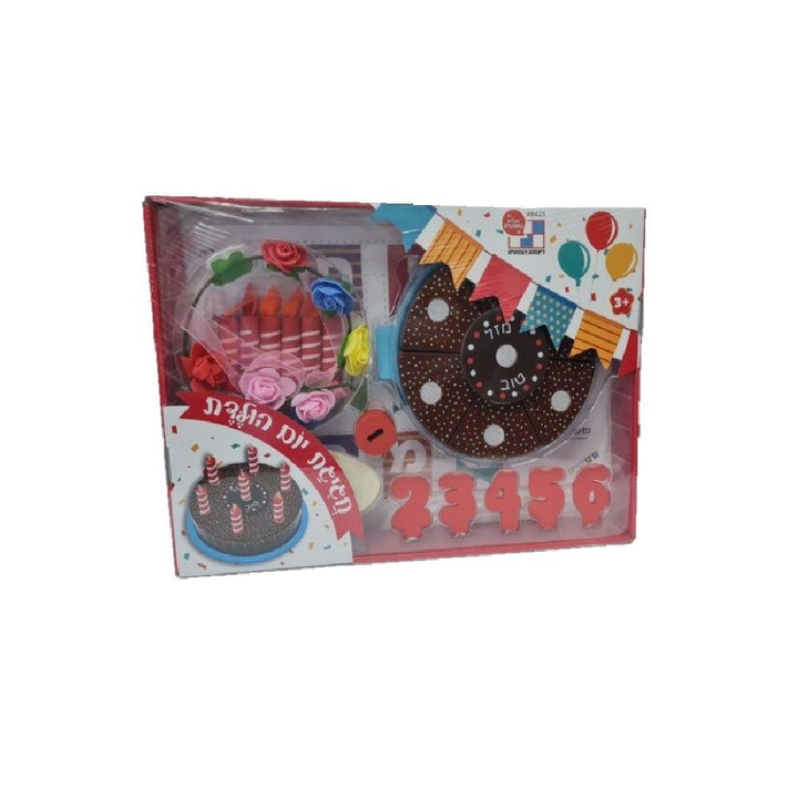 ערכת עץ הכוללת שש פרוסות עוגה מוכנות לחיתוך, נרות, נרות נשלפים ומתחברים בסקוטש וכמובן זר לראש.