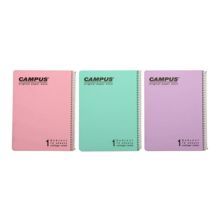 שלוש מחברות ספירלה פסטל שורה מפלסטיק גודל המחברת A4 של חברת קמפוס *צבע המוצר עלול להשתנות בהתאם לזמינות המלאי*