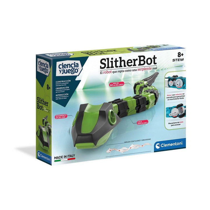 ערכת בנייה רובוט נחש זוחל מבית Clementoni. נחש המתעורר לחיים ומתחיל לזחול בפיתול כמו אמיתי! רובוט שנע בחלל, לחוויית משחק ללא תחרות. הנחש, חיה שתמיד ריתקה אנשים בגלל הפחד שהוא מעורר, הופך לרובוט שזז כאילו הוא אמיתי. מפתח מיומנויות ידניות, יכולות לוגיות ודמיון. רובוט בהשראת עולם החי שמכיר לילדים רובוטיקה...