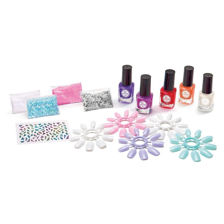 הסט הזה בטוח יעורר את היצירתיות שלכם עם ארבעה בקבוקים של לק נצנצים משנה צבע, ציפורניים מפלסטיק, פאייטים, מדבקות, נצנצים ועוד.