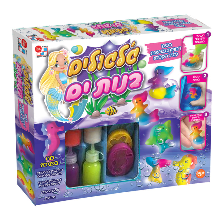 גלגולים להכנת דמויות גמישות בצורת בנות הים - דיאמנטהכינו דמויות גמישות מג'ל הקסם. איך להכין? הכניסו את הג'ל לתבנית טבלו במים קבלו דמות גמישה ומגניבה 4 בקבוקי ג'ל הקסם בצבעים מרהיבים, 4 תבניות ליצירת דמויות חמודות, אבקת הקסם, הוראות. לגילאי 8 ומעלה.