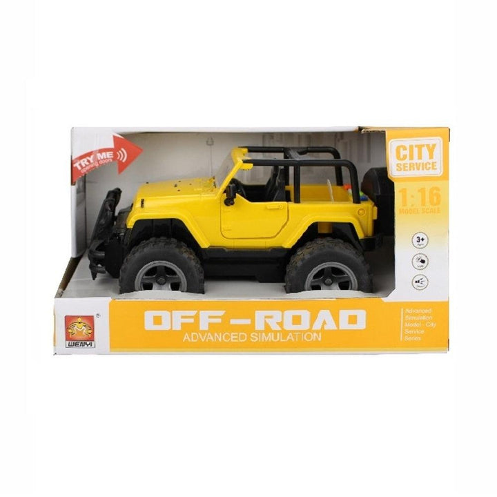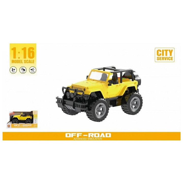 ג'יפ צהוב עשוי פלסטיק כולל אורות וצלילים 23.5X11.5X11 ס"מ לגילאי 3 ומעלה