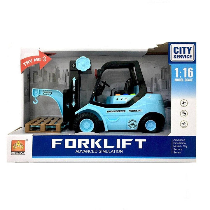 מלגזה כחולה עשויה פלסטיק כולל אורות וצלילים 29X11.5X18.5 ס"מ לגילאי 3 ומעלה