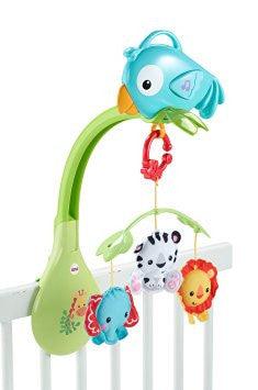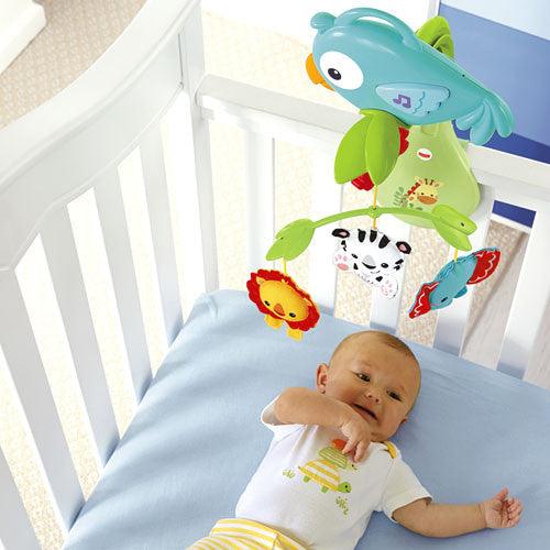 ה-Rainbow Showers Bassinet to Bedside Mobile מבית Fisher-Price כולל צעצועים תלויים בענן ושמש מרהיבים ורשימת השמעה של 20 דקות כדי לעזור לרך הנולד להירגע לתוך חלומות מתוקים.