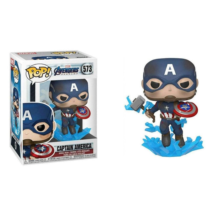 בובת פופ קפטן אמריקה מחזיק בפטיש של ת'ור מסדרת סרטי הנוקמים.