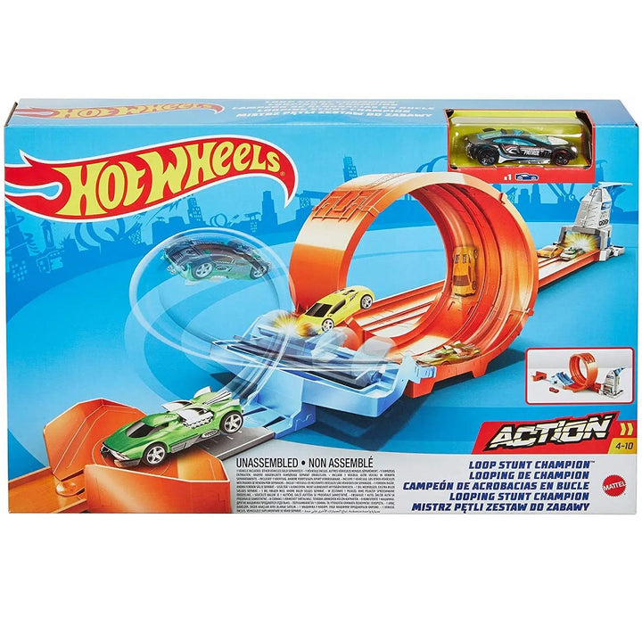 כולל מכונית אחת בקנה מידה 1:64 של הוט ווילס שמתאים למשגר בשתי דרכים - החזרה המסורתית וגם אופקית.