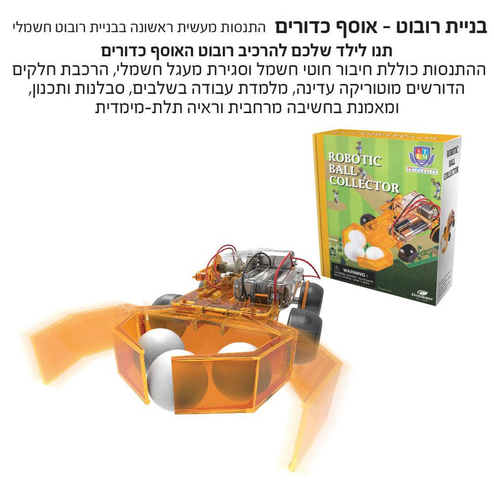 מכונת אוסף כדורים לילדיםהתנסות מעשית ראשונה בבניית רובוט. מוצר המעודד חקר וסקרנות בקרב ילדים. דרך נפלאה לפיתוח כישורים בבנייה ותכנון. עידוד חקר, סקרנות וגילוי בקרב ילדים בתחום המדע הרובוטי. דרך נפלאה לפיתוח כישורי הבנה, בניה ותכנון. תנו לילד שלכם להרכיב רובוט האוסף כדורים! ההתנסות כוללת חיבור חוטי חשמל וסגירת מעגל...