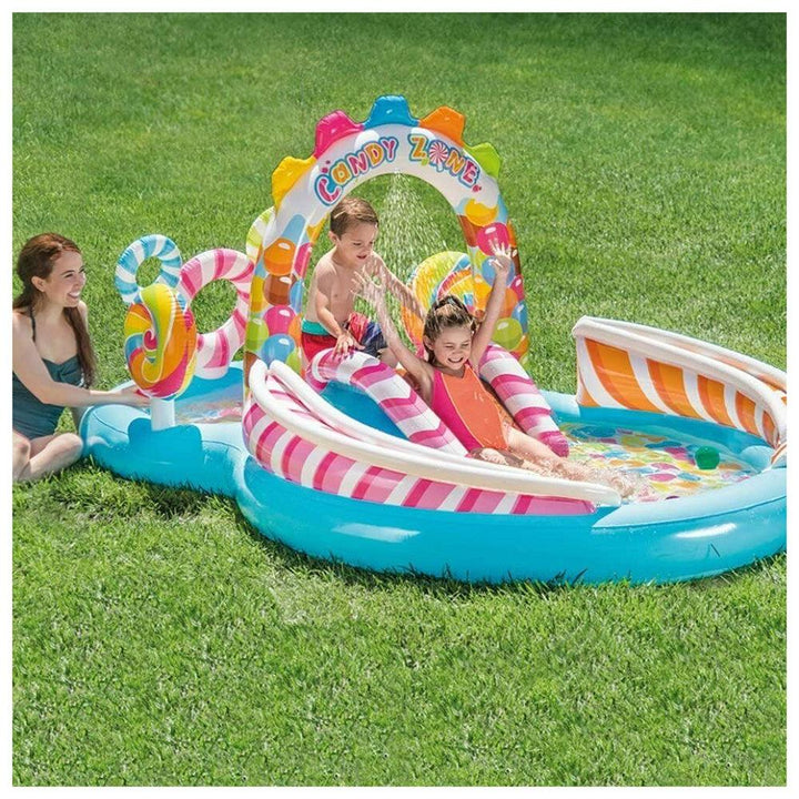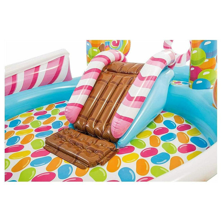 בוא לשחק ולהתקרר בחצר האחורית של הבית במרכז המשחקים הכיפי מבית INTEX. התגלשו במגלשת השוקולד וצאו להרפתקאות בעולם הממתקים מימדי מרכז הפעילות לאחר ניפוח: 295X191X130 ס"מ ילד עד גיל 6 מחויב בהשגחת מבוגר!