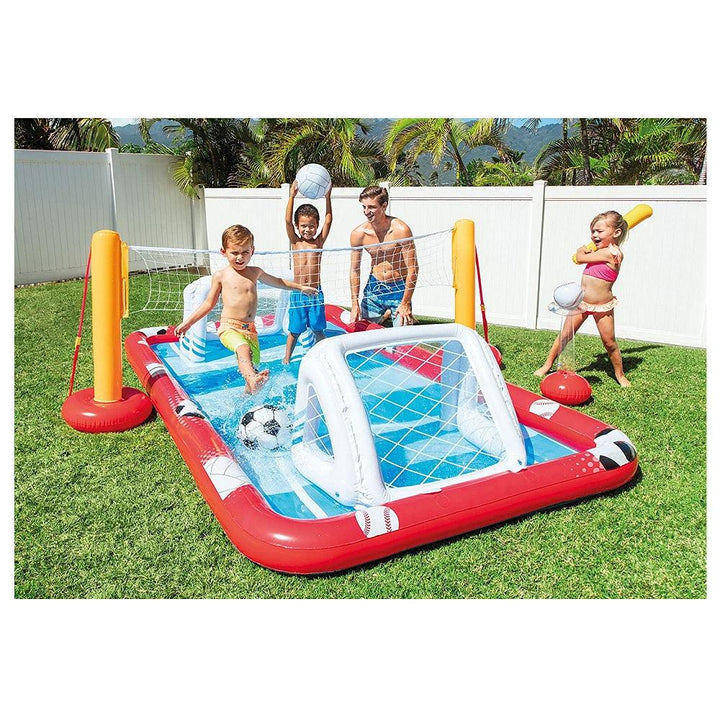 בואו להתיז ולשחק בהנאה במרכז הפעילות 3 ב1 ספורט של INTEX. בואו להנות בכיף תחת השמש בין שני שערי הכדורגל! מרכז פעילות מושלם לכל חובבי הספורט! שילוב של משחקי ספורט שונים לשעות של הנאה! כדורגל, כדורעף ובייסבול! מימדי מרכז הפעילות לאחר ניפוח: 325X267X102 ס"מ ילד עד גיל 6 מחויב בהשגחת מבוגר!