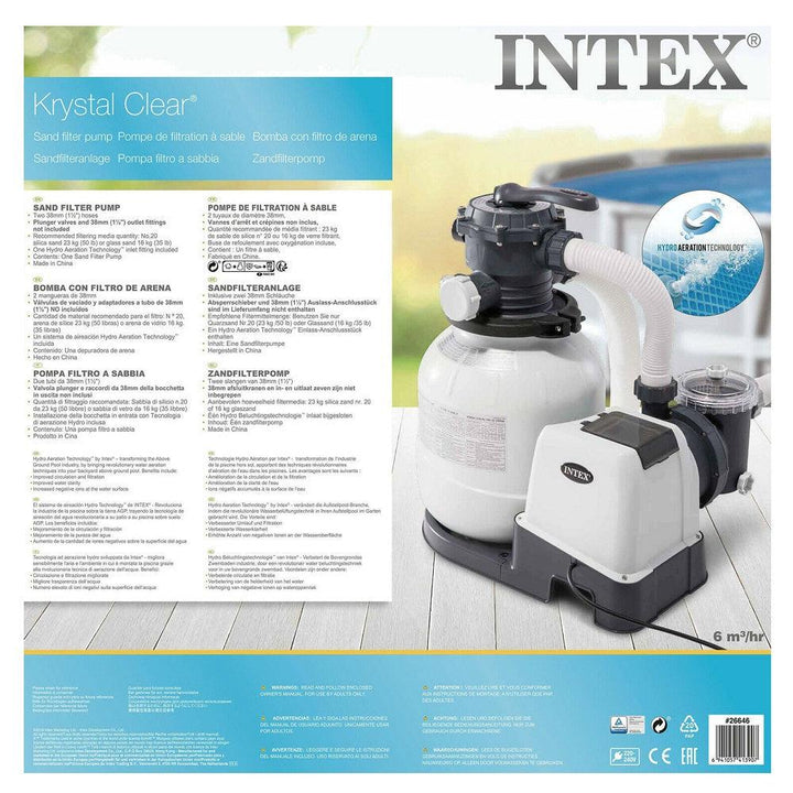 משאבת חול INTEX 26646 במקום להחליף פילטרים פשוט מנקים ושוטפים את הפילטר זכוכית ונפטרים מכל הלכלוך שהצטבר. המערכת שקטה וחסכונית במיוחד. החול מספיק ל 9 שנים!! ללא צורך בהחלפה. הערכה מכילה: סל לאיסוף פסולת. טיימר ל 12 שעות. 6 מצבי פעולה. מיכל מאסיבי. משאבת פילטר 2100 גלון / 7949 ליטר בשעה....