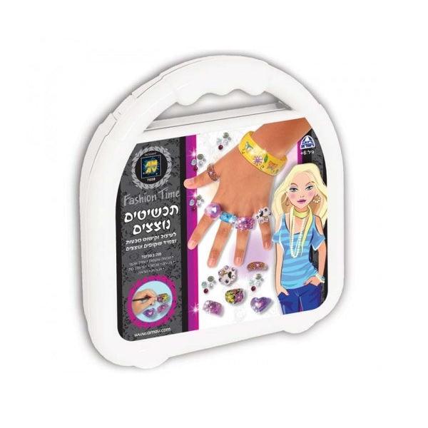 תכשיטים נוצצים לעיצוב וקישוט טבעות וצמיד שקופים ונוצצים מבית דיאמנט. הערכה כוללת טבעות שקופות, צמיד שקוף, צבעים, מכחול, דפי מדבקות, אבני חן והוראות. לגילאי 6 ומעלה.