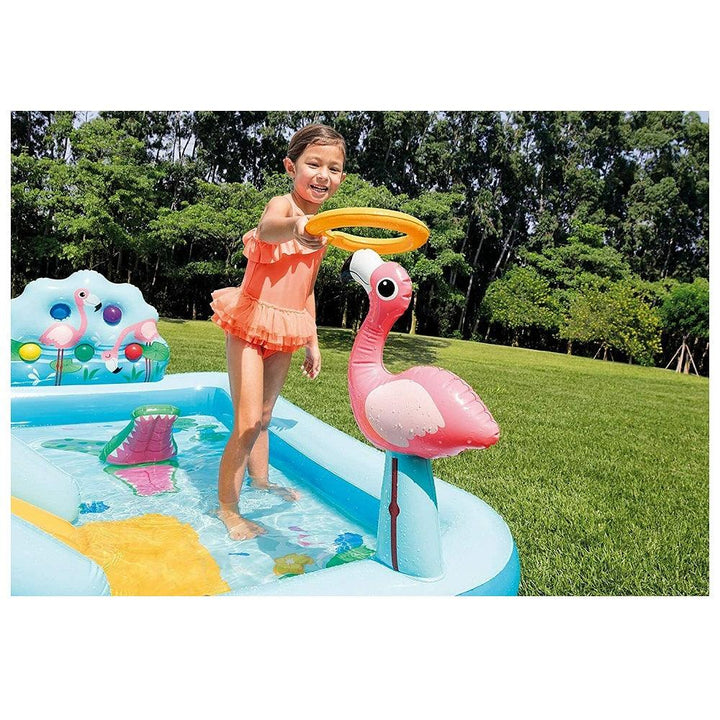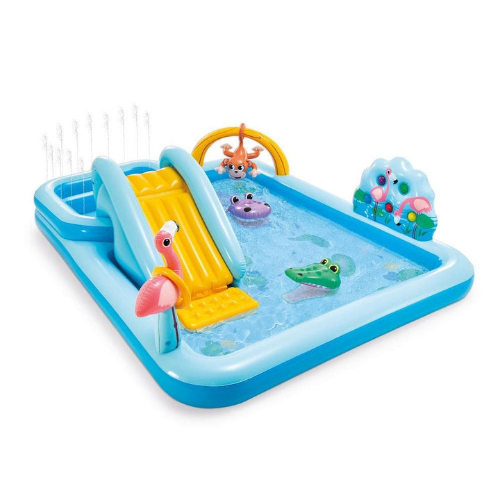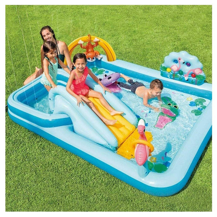 בואו להתיז ולשחק בהנאה במרכז הפעילות של הג'ונגל של INTEX. שתי בריכות לילדים למשחק והתזת מים! בואו להנות בכיף תחת השמש עם עצי דקל מתנפחים, פלמינגו וקופיף! כל ילד יוכל לשמור על קור רוח בבריכת השכשוך, להתגלש במגלשת המים ולנחות היישר בתוך הבריכה! מימדי מרכז הפעילות לאחר ניפוח: 257X216X84 ס"מ ילד עד...