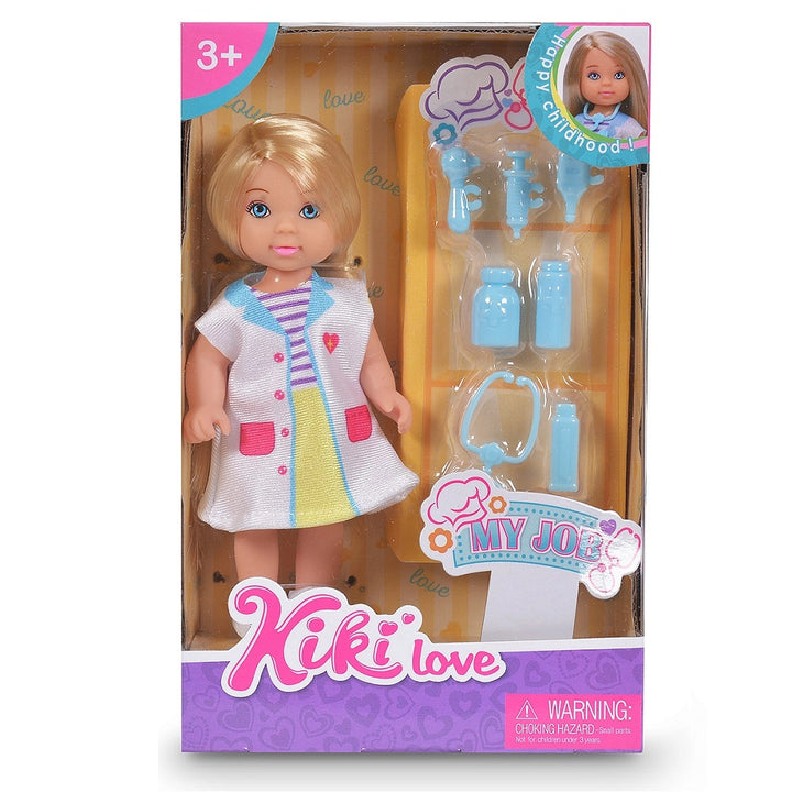 בובת קיקי המתוקה והבלונדינית עם בגדי אחות בית חולים ואביזרים לשעות של כיף והנאה.