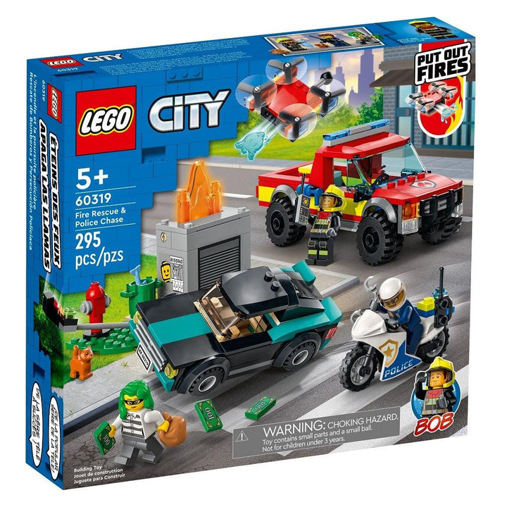 לגו סיטי 60319 כיבוי אש ומרדף משטרתי LEGO City 60319 Fire Rescue and Police Chase מכיל 295 חלקים לגילאי 5 ומעלה