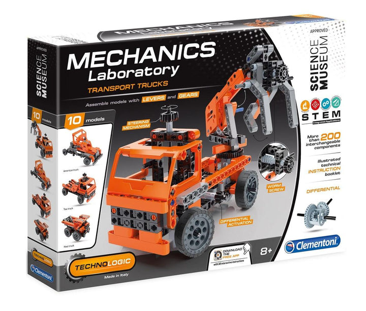 מעבדה מכנית משאית תובלה. ערכת הרכבה מרהיבה בעלת יותר מ-200 חלקים שונים בעזרתם ניתן לבנות 10 דגמי הרכבה שונים! מוצר איכותי תוצרת Clementoni איטליה. לגילאי 8 ומעלה.