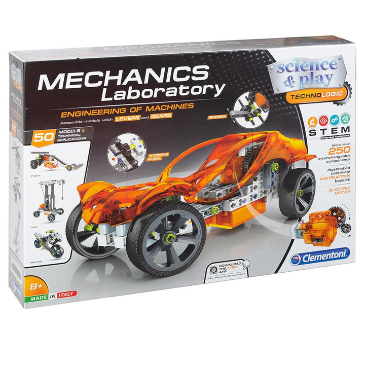 מעבדה מכנית - טכנו קאר. ערכת הרכבה מרהיבה בעלת יותר מ-250 חלקים שונים בעזרתם ניתן לבנות חמישים דגמי הרכבה שונים ומלמדת את ילדכם מכונאות בעזרת משחק! מוצר איכותי תוצרת Clementoni איטליה. לגילאי 8 ומעלה.
