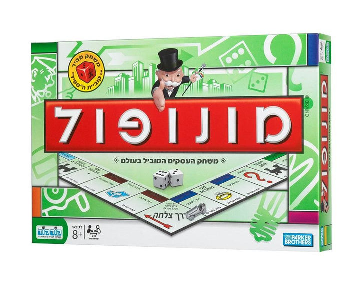 המשחק מכיל לוח, 10 כלי מתכת (2 חלקי חילוף), שטרי קניין (רחובות, תחנות רכבת, חברות מים וחשמל), קלפי מזל, שטרות כסף מונופול, בתים, בתי מלון ו-2 קוביות.