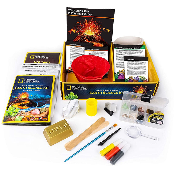 ערכת מדעי כדור הארץ מסדרת ה-National Geographic Mega Science כוללת את כל מה שילדים צריכים כדי לבצע יותר מ-15 ניסויים מדעיים!עם ערכה זו, ילדים יכולים:לגדל גביש אמיתי (בתוך 3 ימים בלבד);לבנות, לצבוע ולפוצץ הר געש רב פעמי;לחפור דגימת רוז קוורץ ושתי חתיכות פיריט (זהב שוטים);ליצור טורנדו מים מסתחרר;טורנדו מים דו-קרב;ליצור...