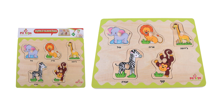 פאזל חיות בר 5 חלקים - פיט טויס פאזל עשוי עץ איכותי במיוחד לקטנטנים שלכם בשלבי ההתפתחות הראשונים בחייהם! לגילאי 1 ומעלה.