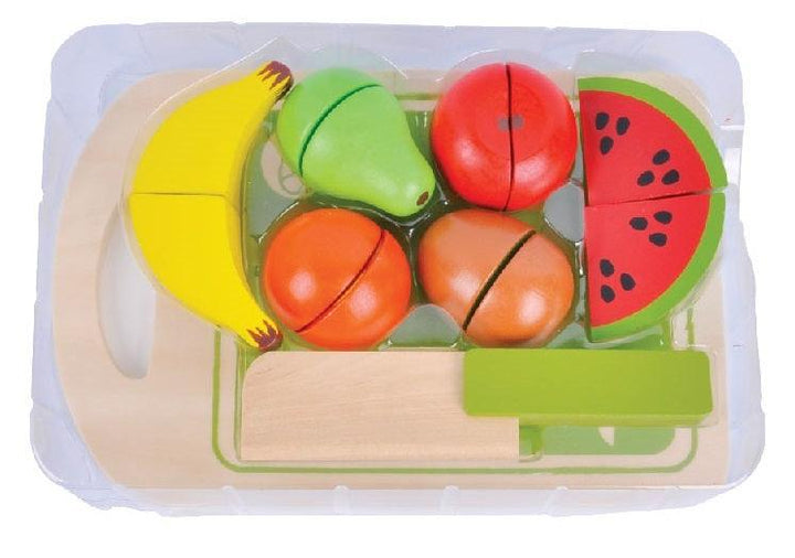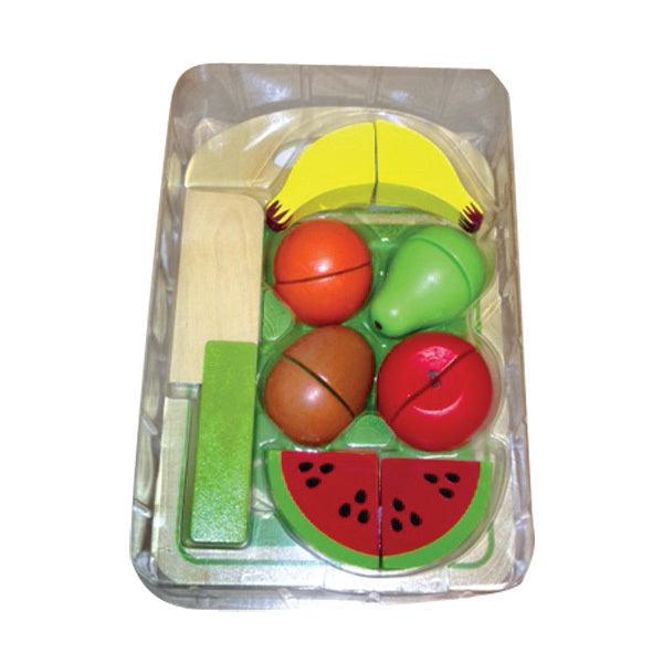 סט הכולל 6 פירות מעץ עם אפשרות חיתוך וסכין (סה"כ 14 חלקים)עשוי עץ מלא איכותי וצבוע בצבעים מרהיבים שאינם רעיליםלגילאי שנה וחצי ומעלה.