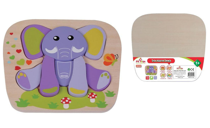 פאזל התאמת צורה פיל מבית פיט טויס הפאזל בעל 8 חלקים צבעוניים מעץ טבעי לגילאי שנה ומעלה. מק"ט: AB6288