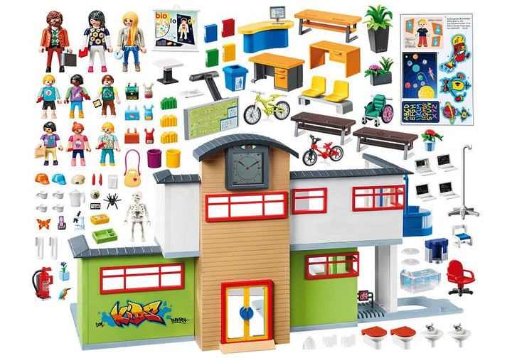 Playmobil 9453 Furnished School Building פליימוביל 9453 בית ספר סופר סט לגילאי 4 ומעלה